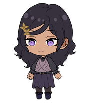 | With an average build and a light brown complexion, Shion is described to be short by the people she works with. She has a middle-length black wavy hair with dark purple undertones and amethyst eyes. She usually holds her longer bangs with two golden butterfly clips on the left side of her face. She also wears different variations of butterfly necklaces, depending on the outfit. One thing that most people notice is that she tends to wear dark reddish-brown stockings in most of her outfits. |